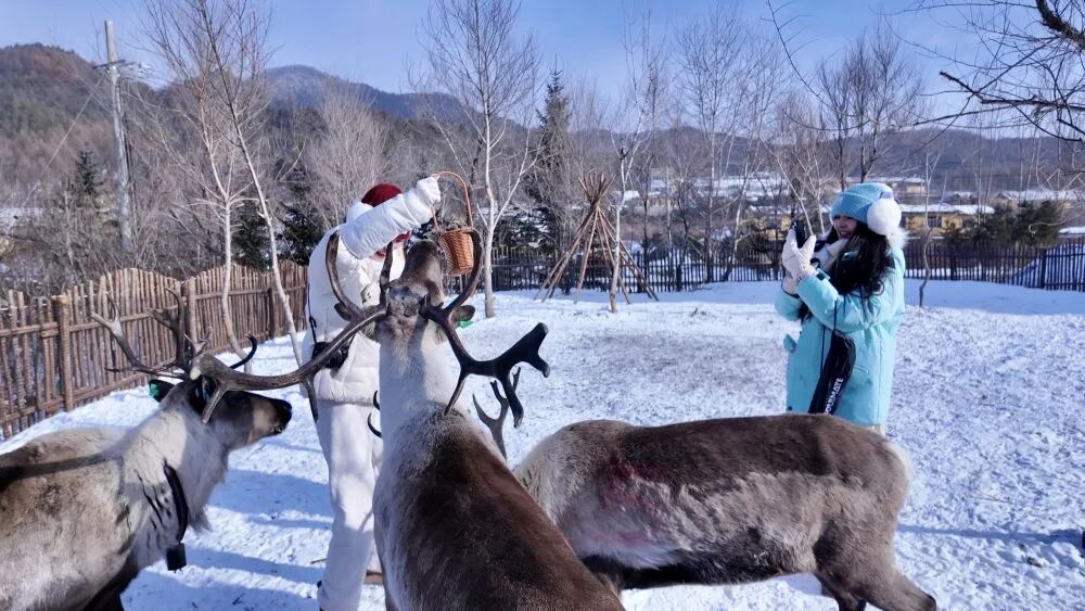 此外,今冬冰雪季,横道河子还上新“驯鹿部落”项目,游客不仅能和驯鹿合影,还可以亲自投喂,体验感拉满。在文创店,琳琅满目的原创文创产品涵盖东北虎造型冰箱贴、景点明信片等,让游客带走宝贵的“小镇记忆”。