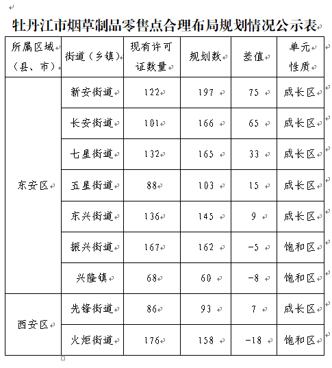 附件:1.牡丹江市烟草制品零售点合理布局规划情况公示表