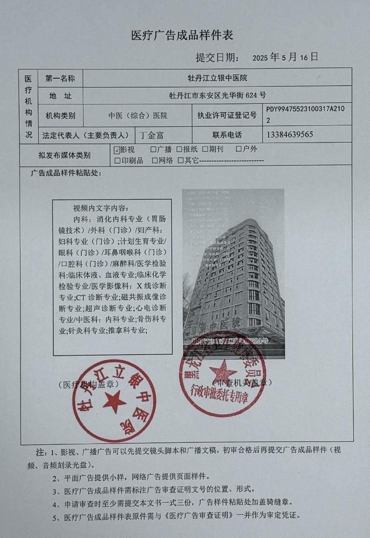 • 牡丹江市立银中医院-医疗广告审查材料(影视)