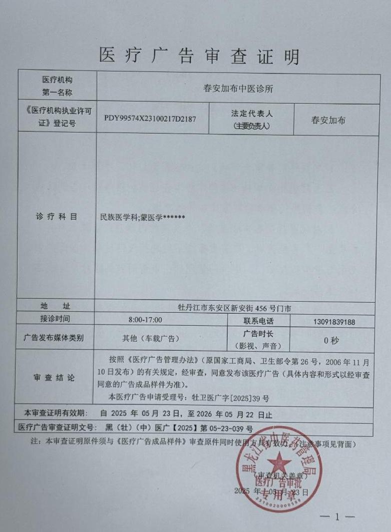 春安加布中医诊所-医疗广告审查材料(其他-车载广告)