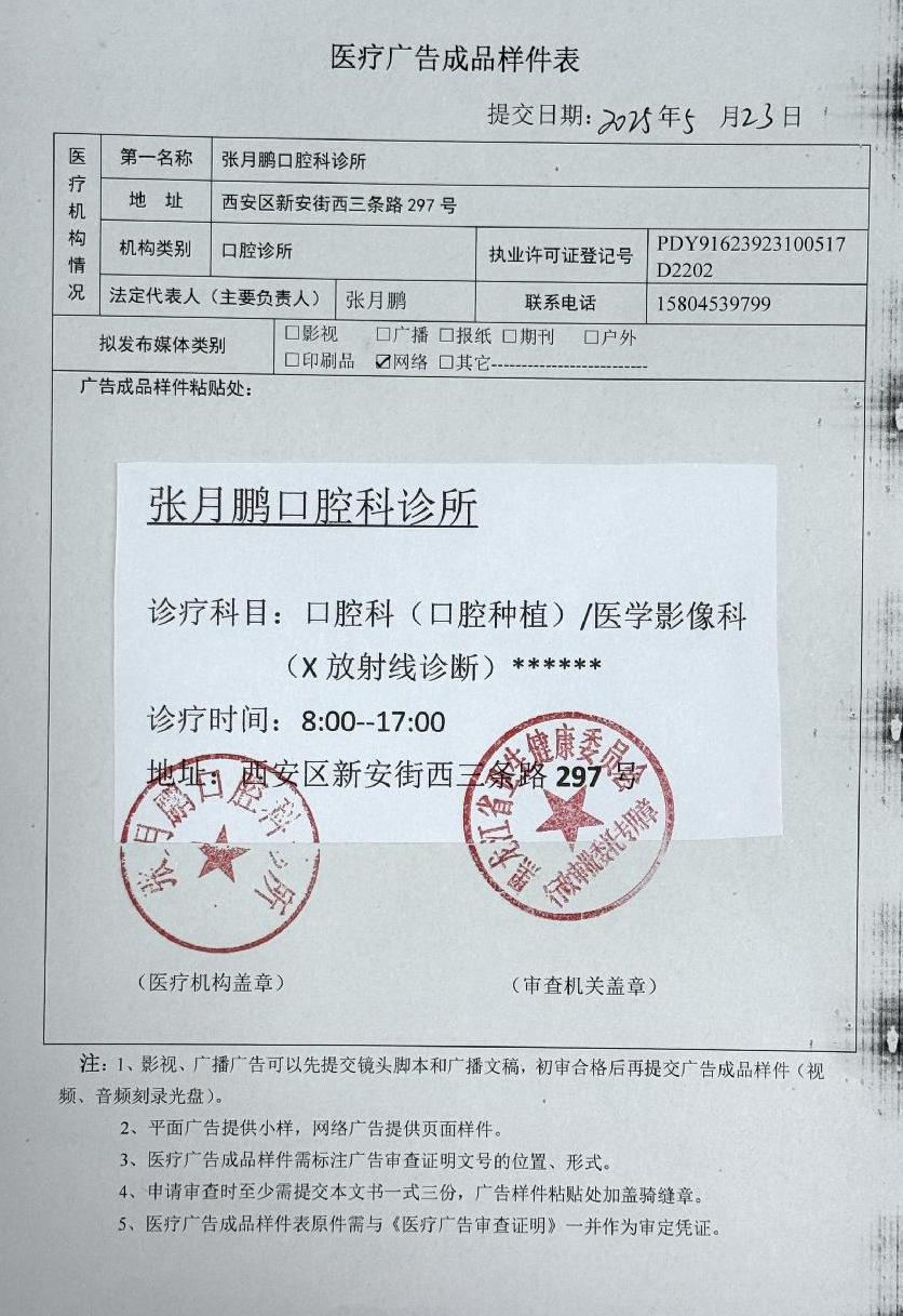 • 张月鹏口腔科诊所-医疗广告审查材料(户外、网络)