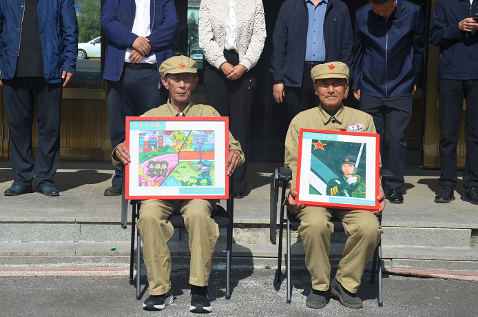 聆听岁月回响,致敬老兵荣光。每一片盛世繁华的背后,都有一份默默守候,每一份坚守的背后,都蕴含着忠诚的信仰。展演结束,抗美援朝老兵代表吴长清讲话,他用亲身经历向大家讲述了那段波澜壮阔的历史,激励年轻一代珍惜和平年代,不忘先辈奋斗。学生代表为老兵赠送了亲手绘制的国防教育主题绘画作品,表达了全校师生对革命老前辈的崇敬之心。