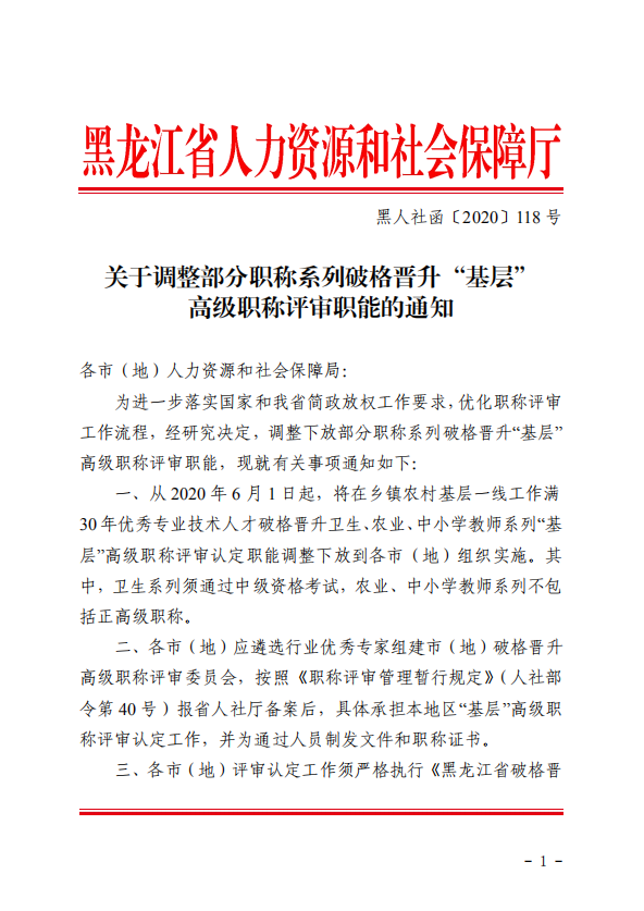 关于调整部分职称系列破格晋升“基层” 高级职称评审职能的通知