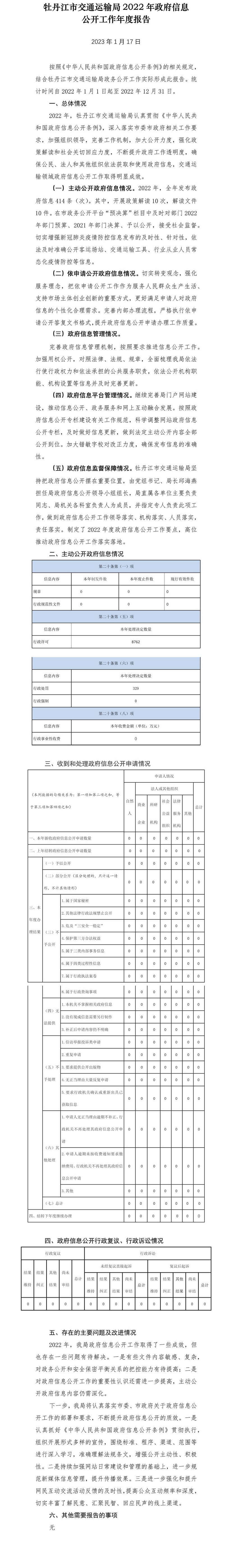 原文下载:牡丹江市交通运输局2022年政府信息公开工作年度报告