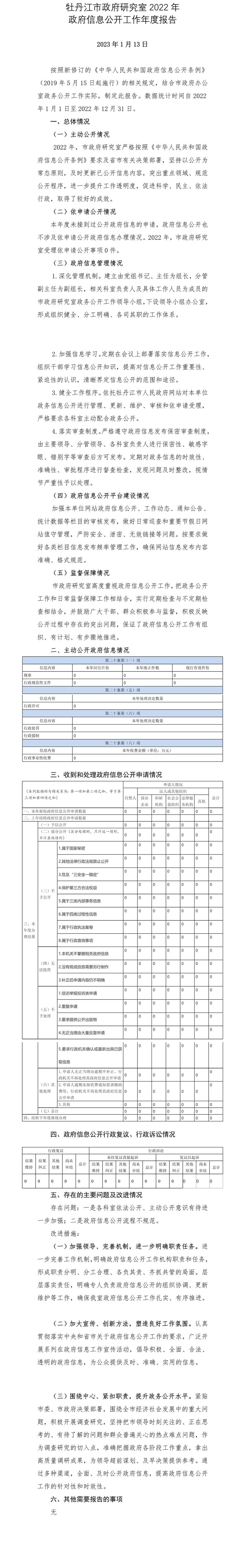 • 牡丹江市政府研究室2022年政府信息公开工作年度报告