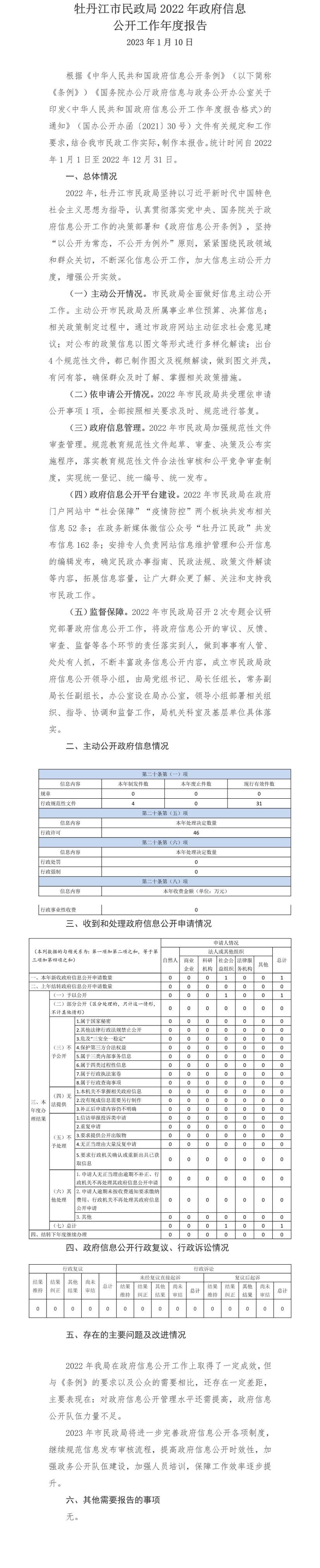 • 牡丹江市民政局2022年政府信息公开工作年度报告