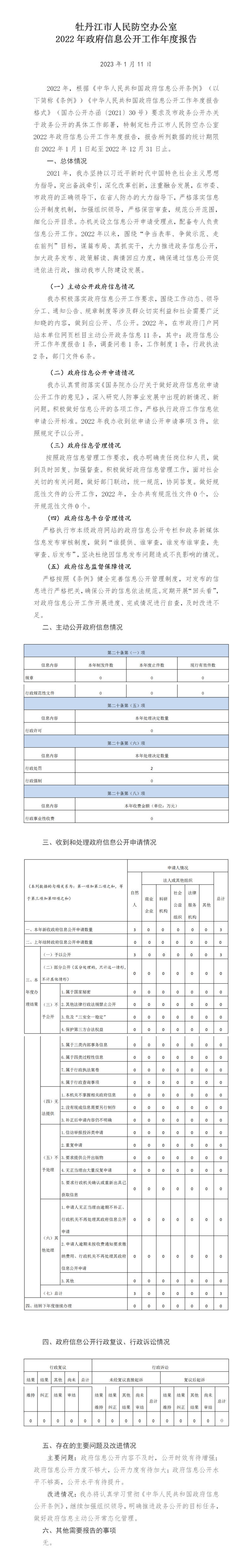 • 牡丹江市人民防空办公室2022年政府信息公开工作年度报告