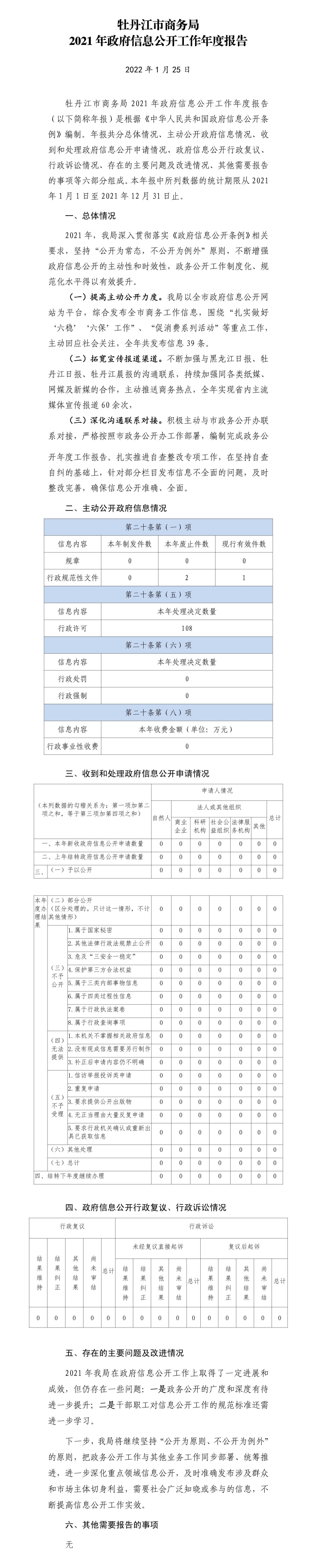 • 牡丹江市商务局2021年政府信息公开工作年度报告