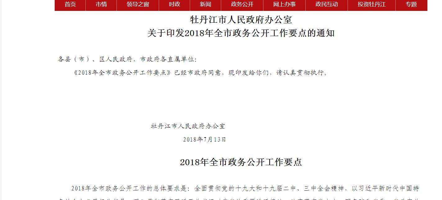 牡丹江市人民政府办公室2018年政府信息公开工作年度报告