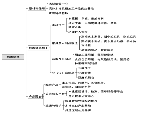 2.共建现代林木林纸产业链。依托俄罗斯木材原料进口优势,坚持高端化、智能化、个性化、定制化发展方向,积极承接山东、浙江等地木材加工产业转移,大力发展新型建材、实木和复合板材加工、木制家具等林木产业,引导造纸企业技改升级和新产品开发,打造国内重要的林木林纸产业基地。到2025年,力争全市林木林纸产业产值达到100亿元,2026年实现更高质量发展。培育木材加工全产业链发展。充分利用边境贸易政策,扩大原材料进口,巩固提高各种板材生产规模,推进穆棱国际林木加工产业转型升级等项目建设,着力打造中国北方重要的人造板材生产基地。鼓励企业开发高档实木家具、新中式家具、软体家具、欧式家具等产品,积极引进实木家具配件、组装件、环保胶(漆)等配套企业,推动家具全产业链发展。推进木质地板产业高端化升级,积极开发高档实木地板、实木复合地板、实木仿古地板等中高端产品。重点推进绥芬河国林木业城产业园、穆棱国际林木加工产业转型升级示范区、阳明经济开发区木切皮产业园、恒海木业整体实木橱柜加工等项目建设。打造高端机制纸生产基地。鼓励恒丰纸业、永昌纸业等龙头企业加强技术改造,优化纸制品生产结构,稳定发展烟草工业用纸、薄型印刷纸,加强食品包装用纸、医用特种纸等产品研发创新,提高中高端纸制品比重,推进林纸产业规模化、集群化发展。建设麻产业新高地。发挥气候和生态优势,扩大汉麻、亚麻种植品种和面积,提升亚麻原材料供给能力。培育壮大龙穆亚麻、红豆杉亚麻、德国新凌亚麻、金泰恒亚麻、鑫锐亚麻、天恒亚麻等龙头企业,大力拓展高附加值亚麻新的应用领域,推动亚麻产业集亚麻种植、原料加工、纺纱、织布、印染、制品加工等全产业链集群式发展,推进亚麻产业园建设,打造“中国新兴亚麻城”。〔牵头部门:市工信局,责任部门:市科技局、市农业农村局、市商务局、市市场监管局、市经合局、绥芬河海关、市开发区管委会,各县(市)区政府〕