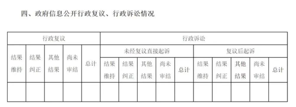 这一项主要报告两方面情况:一是政府信息公开行政复议处理结果情况;二是政府信息公开行政诉讼处理结果情况。根据行政复议法和行政诉讼法有关规定,行政诉讼处理结果需进一步区分两类情形,分别是“未经复议直接起诉”和“复议后起诉”。