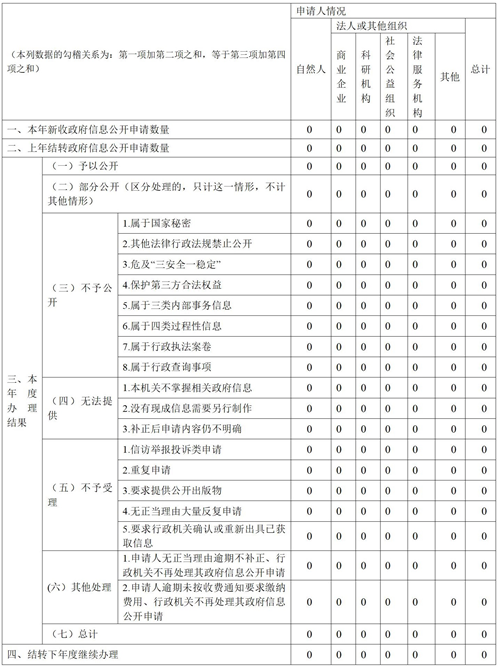 三、收到和处理政府信息公开申请情况