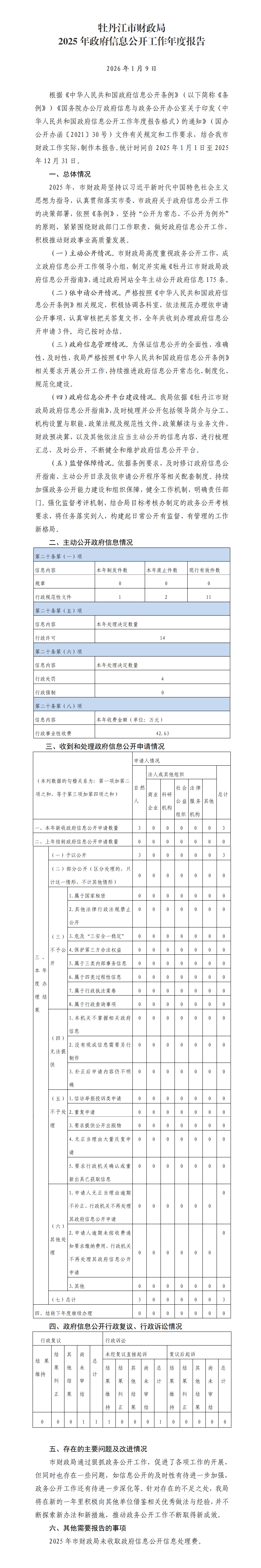 牡丹江市财政局2025年政府信息公开工作年度报告